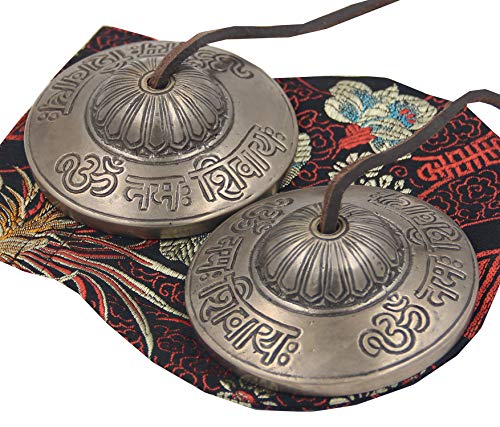 Tibetan Premium Quality "Om Nama Shivaya" Tingsha Cymbals 2.5" With Pouch