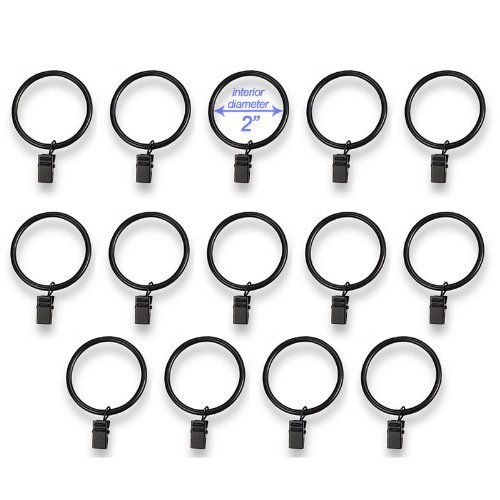 Set of 14 Decorative Drapery Curtain Clip Rings, 2" Interior Diameter, Black Premium Iron Metal Material