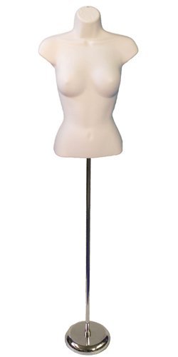 Female Torso Form, Fleshtone with Tall Adjustable Mannequin Stand, Round Base