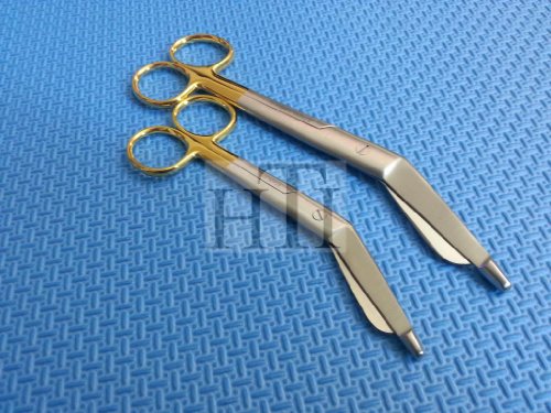 SET OF 2 PREMIUM O.R GRADE GOLD HANDLE SUPERCUT LISTER BANDAGE SCISSORS 5.5" + 7.25" WITH ONE SERRATED BLADE ( HTI BRAND)