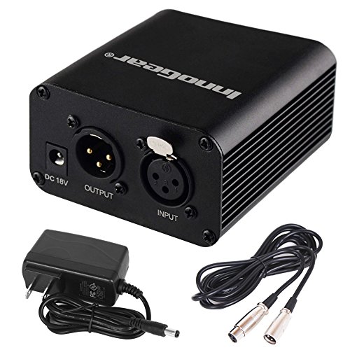 InnoGear 1- Channel 48V Phantom Power Supply with 10 Feet XLR Cable and Adapter for Any Condenser Microphone Music Recording Equipment