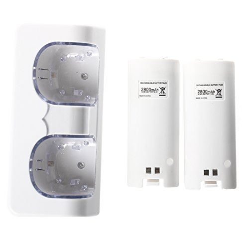 SODIAL(R) Premium LED Light Charging Station Plus 2 High Capacity Rechargable Replacement Battery Compatible with Nintendo Wii Remote Control Free With USB Cable