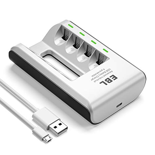 EBL Smart C807 Battery Charger for 1/2/3/4 AA AAA NiMH NiCD Rechargeable Batteries - Freely charged by Power Bank, Adapter