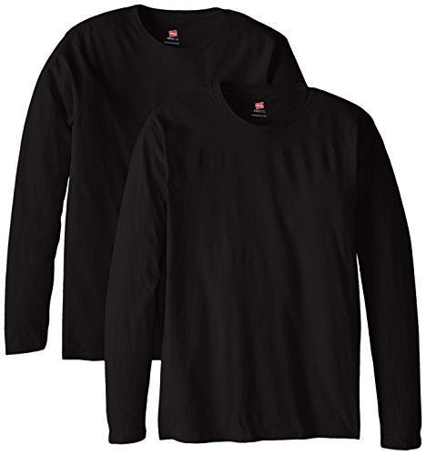 Hanes Men's Long Sleeve Nano Cotton Premium T-Shirt (Pack of 2), Black, 3X-Large