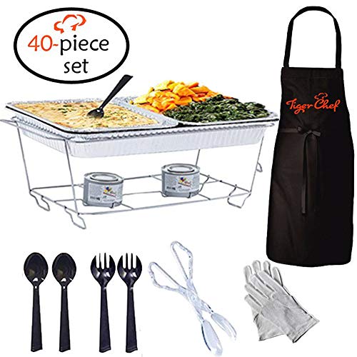 Tiger Chef Full Size Disposable Wire Chafer Stand Kit, Set Includes White Waitress Gloves, White, 40 Piece