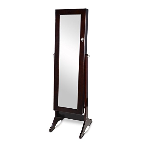Organizedlife Brown Mirrored Jewelry Armoire Cheval Floor Cabinet Organizer Storage with Drawer