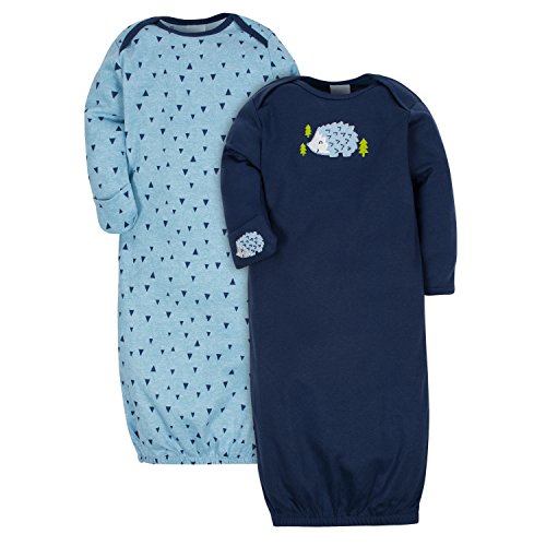 Gerber Baby Boys' 2 Pack Cute Lap Shoulder Gown, Blue, 0-6 Months