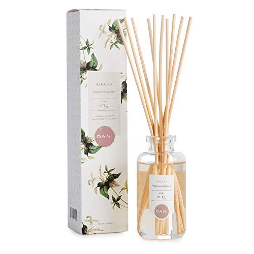 Natural Reed Diffuser Set by DANI Naturals - Inviting Vanilla Scented - Aromatherapy Essentials Oils - Alcohol Free - 10 Diffuser Sticks - 3.5 Ounce Glass Bottle