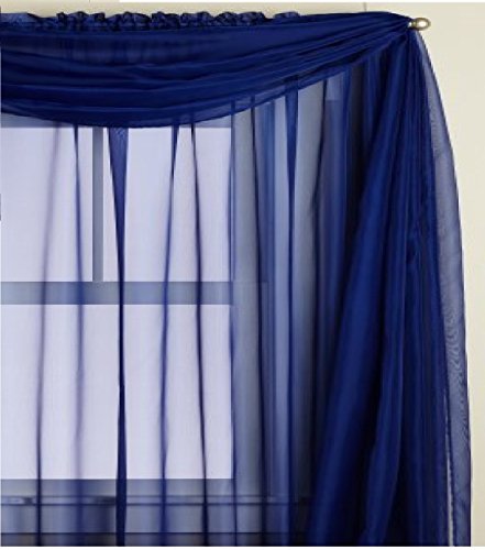 1 X Beautiful Elegant Voile Sheer Valance Scarf 37" X 216" Topper Navy Royal Blue Dark Blue