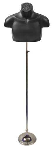 Upper Torso Male, Black with Tall Adjustable Mannequin Stand, Trumpet Base