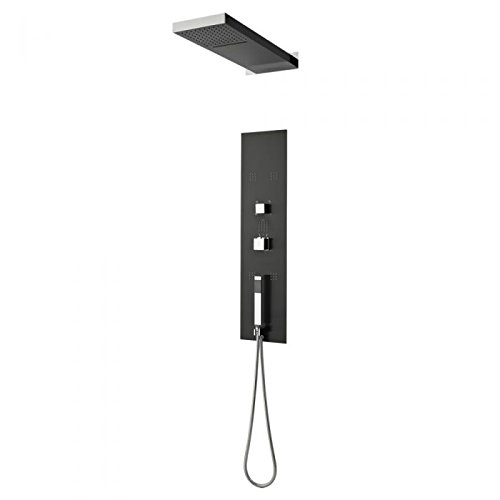 Hudson Reed Thermostatic Shower Panel With Rainfall Style Head, Square Handset & 6 Body Jets In Gun Metal Finish