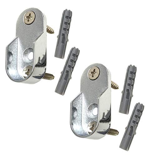 Desunia - 4 Pack - Oval Closet Rod End Supports - Screw on Type - 15mm x 30mm - Polished Chrome