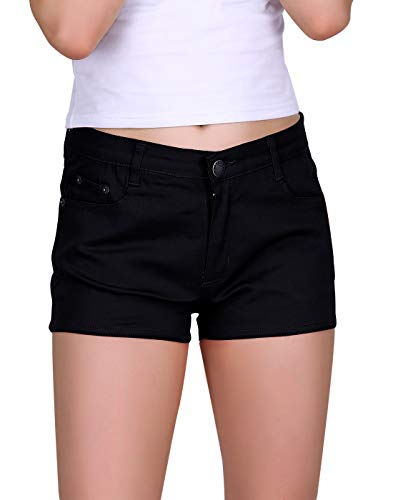 HDE Women's Solid Color Ultra Stretch Fitted Low Rise Moleton Denim Booty Shorts