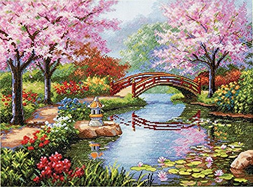 Dimensions Gold Collection Counted Cross Stitch Kit, Japanese Flower Garden, 16 Count Light Blue Aida, 12'' x 16''