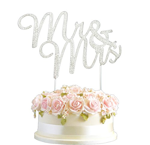 LuLu Sparkles LLC Crystal Rhinestone Bling Wedding Monogram Mr Mrs Cake Topper Wedding Cake Topper Bling Keepsake (1, Silver Clear)