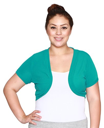 Libian Junior Plus Size Open Front Cropped Bolero Cardigan Sweater Shrug (1X, Jade)