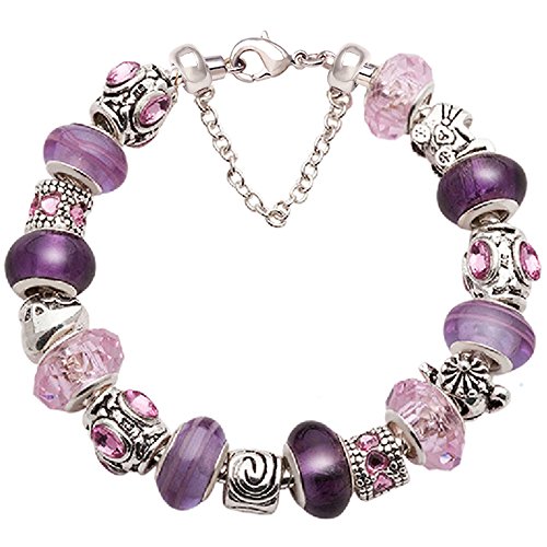 Mother Bracelet Purple and Pink Glass Bead Silver-tone Complete Charm Beaded Bracelet Jewelry