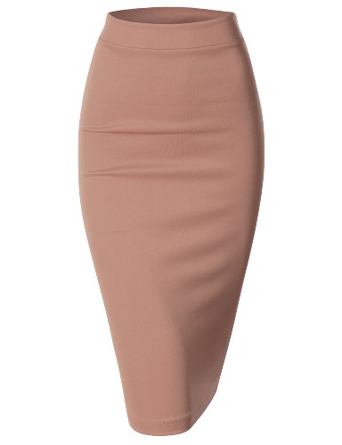Doublju Elastic Waist Scuba Slim Fit Stretchy Pencil Midi Skirt (Plus Beige 2XL