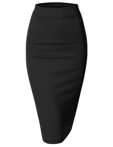 Doublju Elastic Waist Scuba Slim Fit Stretchy Pencil Midi Skirt (Plus Black X Large