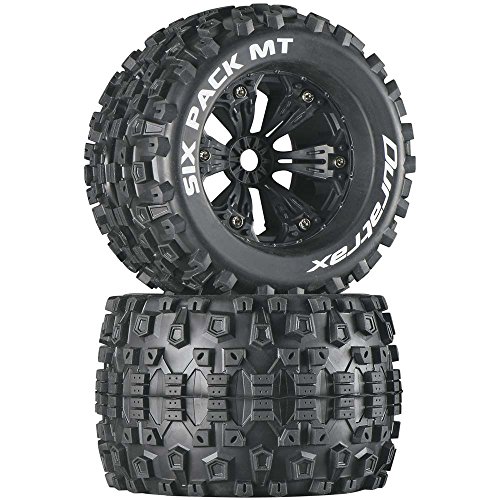 Duratrax Six Pack MT 3.8" RC Monster Truck Tires with Foam Inserts, CS Sport Compound, Mounted on 1/2" Offset Black Wheels (Set of 2)