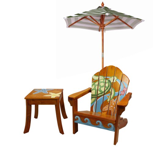 Winland - Outdoor Table and Adirondack Chair Set with Unbrella - Sea Turtle