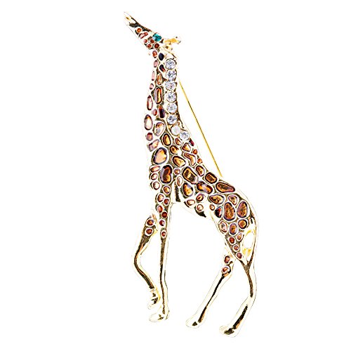 Fashion Crystal Rhinestone Animal Giraffe Design Charm Brooch Pin Gold Brown