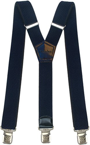 Mens Suspenders Wide Adjustable and Elastic Braces Y Shape with Very Strong Clips - Heavy Duty (Navy Blue)