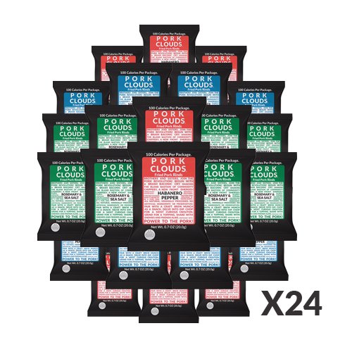 Pork Clouds - (8) Rosemary & Sea Salt + (8) Malabar Black Pepper + (8) HabaƱero - (24 Bags Total)