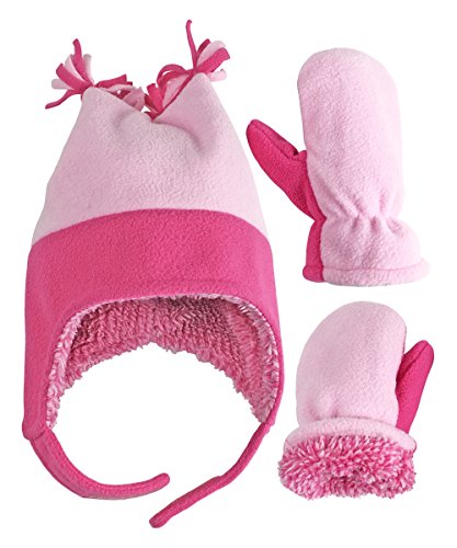 N'ice Caps Girls 4 Corner Sherpa Lined Fleece Hat and Mitten Set (2-3yrs, purple/lavender)
