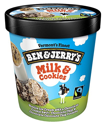 Ben & Jerry's - Vermont's Finest Ice Cream, Non-GMO - Fairtrade - Cage-Free Eggs - Caring Dairy - Responsibly Sourced Packaging, Milk & Cookies, Pint (8 Count)