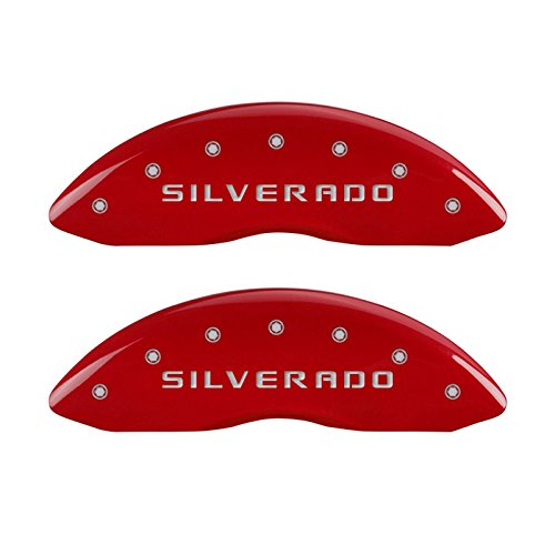 MGP Caliper Covers 14002SSILRD 'SILVERADO' Engraved Caliper Cover with Red Powder Coat Finish and Silver Characters, (Set of 4)
