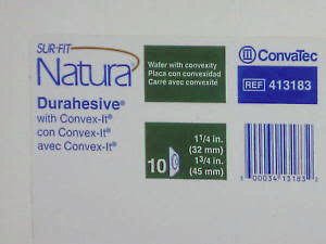 Convatec 413183 SUR-FIT Natura with CONVEX-IT Technology Two-Piece Pre-Cut, Durahesive Skin Barrier with tape collar, White, 45mm (1 3/4") flange; 32mm (1 1/4") stoma opening, 10/BX