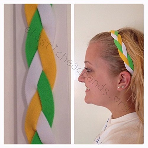 Fabulici Green Yellow White Braided Headband Softball Running Sports Braided Headbands Sweat Silicone Non Slip Grip No Armour Scrunchy Women Girl Soccer Yoga Running Soccer Basketball Tennis Hair