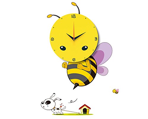 WallElf (TM) Removable Peel and Stick Nursery Wall Decals with Non-Ticking Silent Wall Clock (Dazzle Bee Style), Decorative Mural Decal Combination, Perfect Home Decorations for Baby Nursery Bedroom, Kid’s Room, Boy’s Room, Girl’s Room, Restroom, Nu