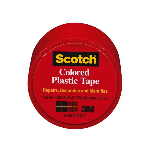 Scotch 191RD-6 Colored Plastic Tape, 1.5 x 125-Inch, Red