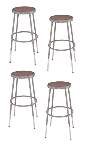 (4 Pack) National Public Seating 25"-33" Height Adjustable Heavy Duty Steel Stool, Grey