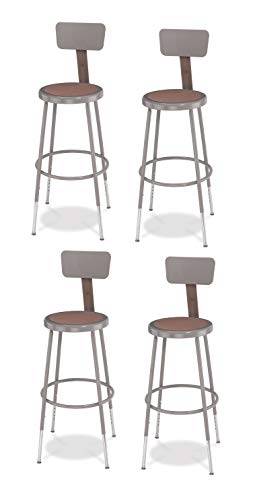 National Public Seating 6224HB-CN Steel Stool with Hardboard Seat Adjustable and Backrest, 25"-33", Grey (Pack of 4)