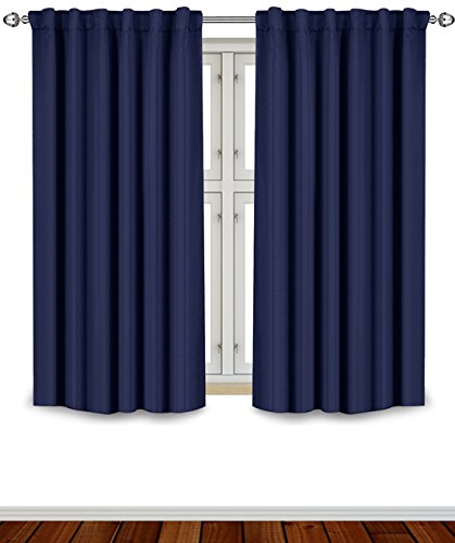 Utopia Bedding Blackout Room Darkening and Thermal Insulating Window Curtains/Panels/Drapes - 2 Panels Set - 7 Back Loops per Panel - 2 Tie Backs Included (Navy, 52 x 63)