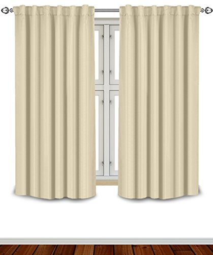 Utopia Bedding Blackout Room Darkening Curtains Window Panel Drapes - Beige Color 2 Panel Set, 52 inch Wide by 63 inch Long Each Panel- 7 Back Loops per Panel- 2 Tie Back Included
