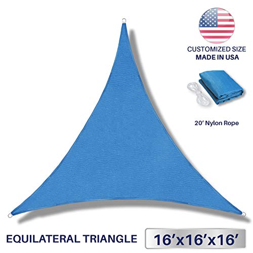 Windscreen4less 16' x 16' x 16' Sun Shade Sail Canopy in Ice Blue with Commercial Grade (3 Year Warranty) Customized Sizes Available