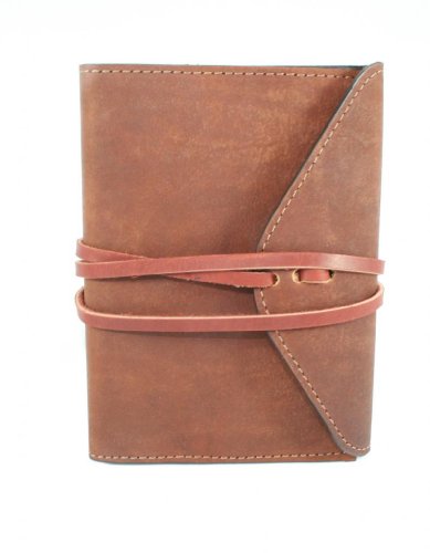 Leather Companion Journal with Wraparound Strap to Close, Brown 4" X 6" with Lined Paper Filler (Refillable Paper) Handcrafted in USA (Brown tones of leather will vary and strap color will vary)