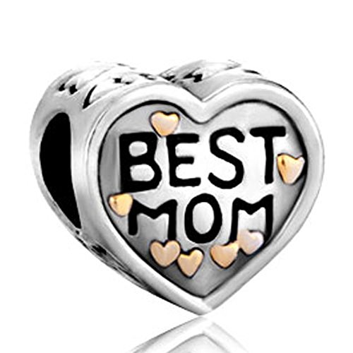 CharmingJewelry Gold Plated Heart Love Best Mom Charm Bead