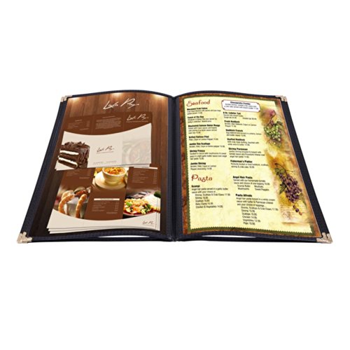 Yescom 20x Menu Cover 8.5x11inches 4 Page 8 View Restaurant Deli Cafe Black Trim Folder Clear Volume