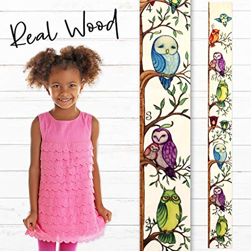Growth Chart Art | Owl Growth Chart Ruler | Wood Height Ruler for Kids [Boys + Girls] | Kids Growth Chart Wood | Measuring Kids Height Wall Décor