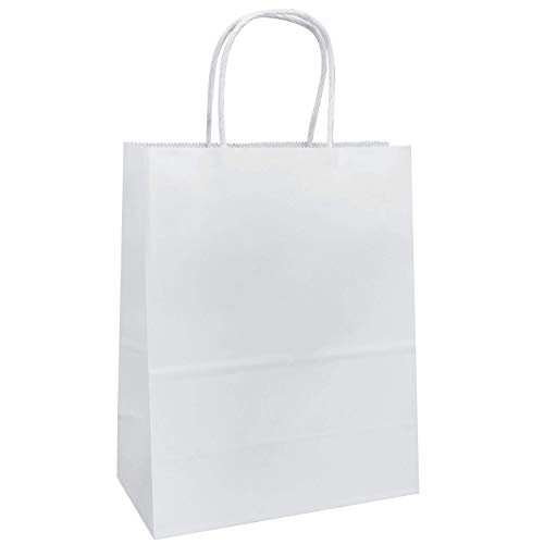 8"x4.75"x10" - 100 Pcs White Kraft Paper Bags, Shopping, Mechandise, Party, Gift Bags, Flexicore Packaging®