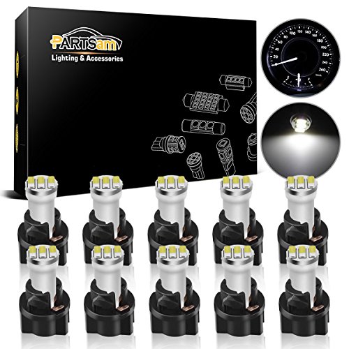 Partsam 10Pack White Twist Socket T5 73 74 3528 SMD LED Gauge Cluster Bulbs Dashboard Light Lamp Instrument Panel Indicators