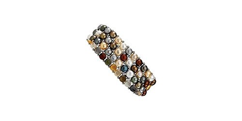 Sterling Silver Freshwater Cultured Multi-Colored Pearl 3 Row Stretch Bracelet