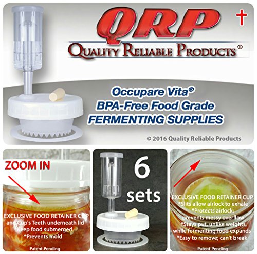 6 QRP No Messy Overflow No Weights Needed Mold-Proof Mason Jar Fermentation Kits with Exclusive Food Retainer Cups keep food submerged in brine (3 REGULAR MOUTH & 3 WIDE MOUTH KITS)