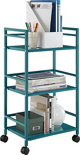 Ameriwood Home 7741396PCOM Marshall 3-Shelf Metal Rolling Utility Cart, Teal