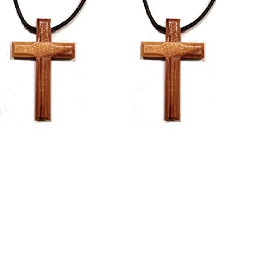 Olive Wood Cross Pendent Necklace Leather Cord Made in Bethlehem Set of 2